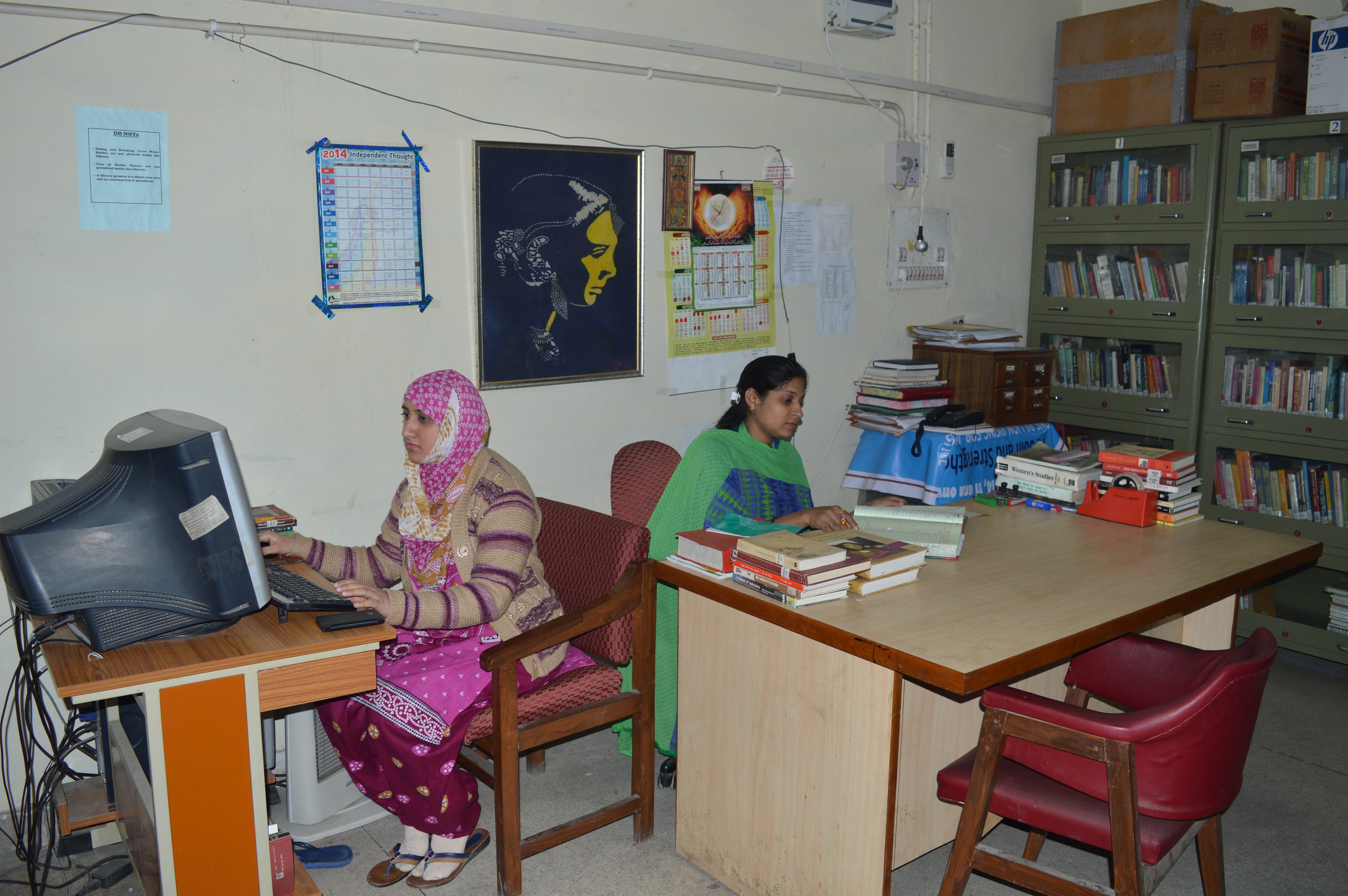 SNCWS Library is fully computerized with help the KOHA open source library management software. It delivers user focused innovative information products, services and programs of the highest quality that are integrated with teaching, learning and research activities. The collection of library covers the latest information resources on all areas of women's Studies, Gender Studies, Human Rights Law and Education. The Library Services/ Facilities include Internet service, Online Database Searching Facilities, CD-ROM Services, Newspapers Clipping Services, Current Content Services, Current Awareness Services, Reference/ Referral Service, Reprography Service. The library also provides compiled basic reading materials for students enrolled for the courses in Gender studies.